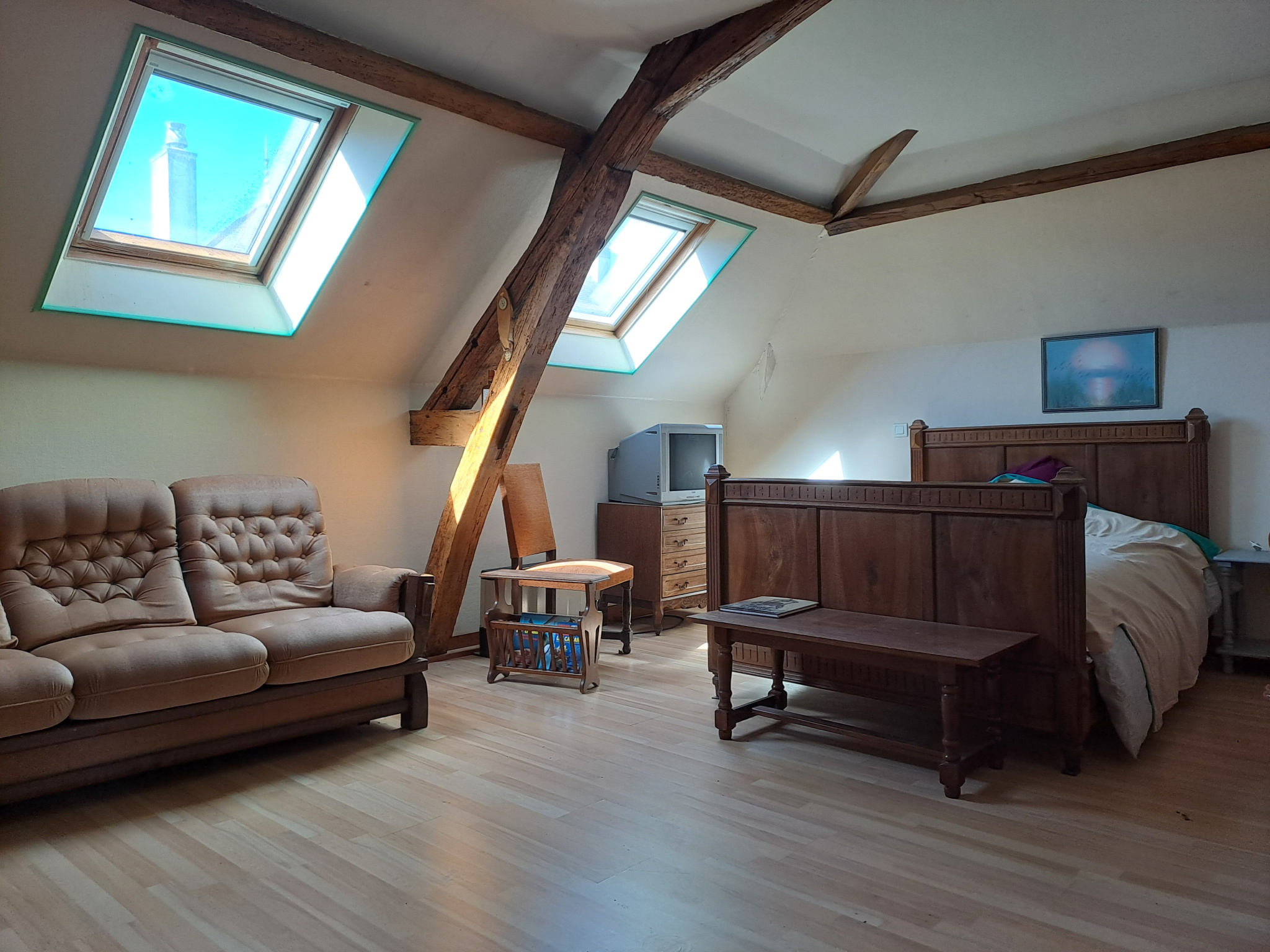 L’étage actuellement accessible par l’extérieur dispose d’une grande chambre et d’un WC ainsi que d’un grenier de 55 m2 aménageable vous laissant une belle opportunité d’agrandissement ou la possibilité d’avoir deux logements indépendants.