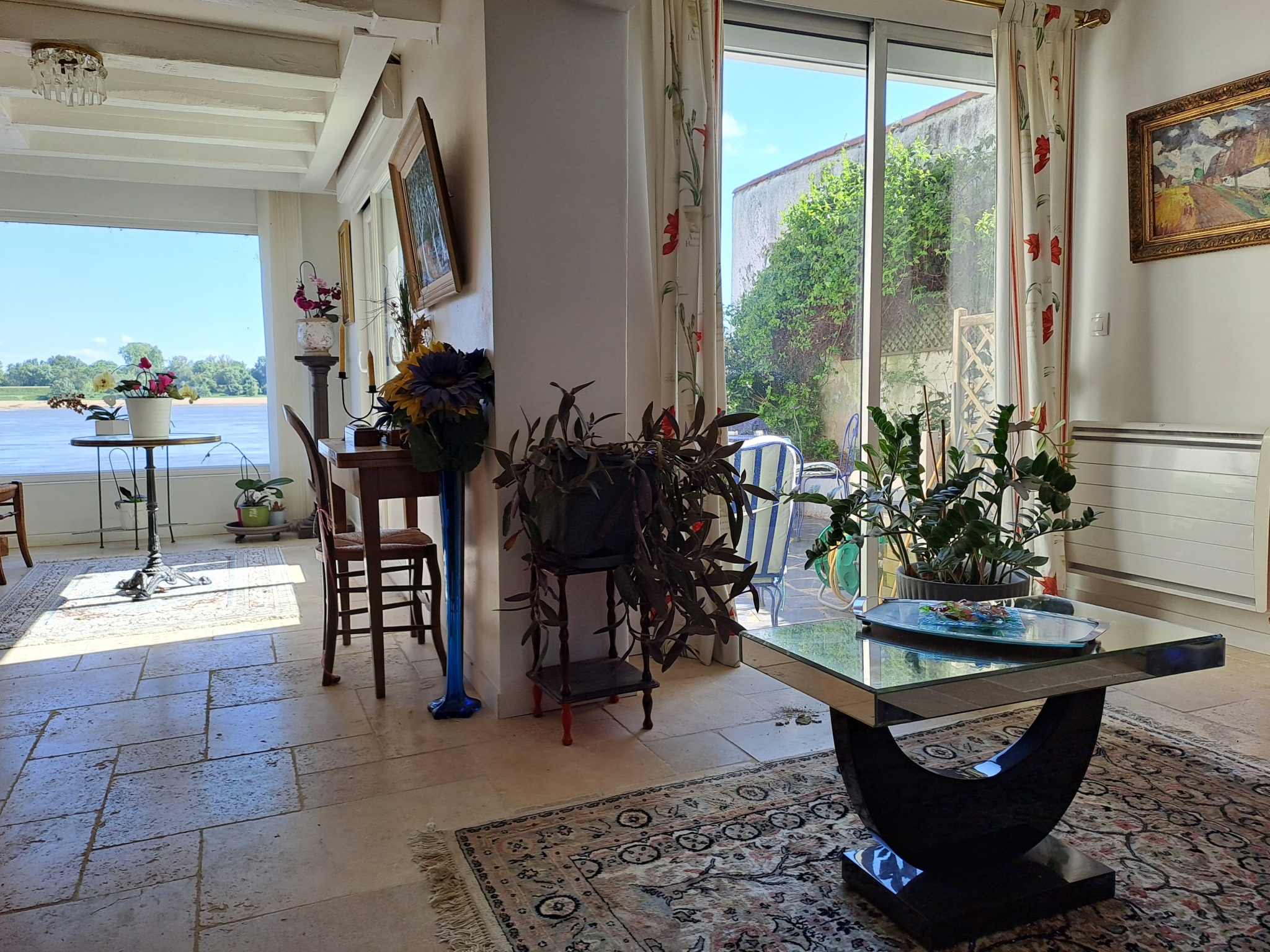 Au pied de la Loire et exopsée plein Sud, cette maison en tuffeaux a été complètement rénovée en 2012 avec de beaux matériaux comme le travertin et décorée avec goût. Elle vous charmera grâce à ses poutres, son parquet et ses tomettes.