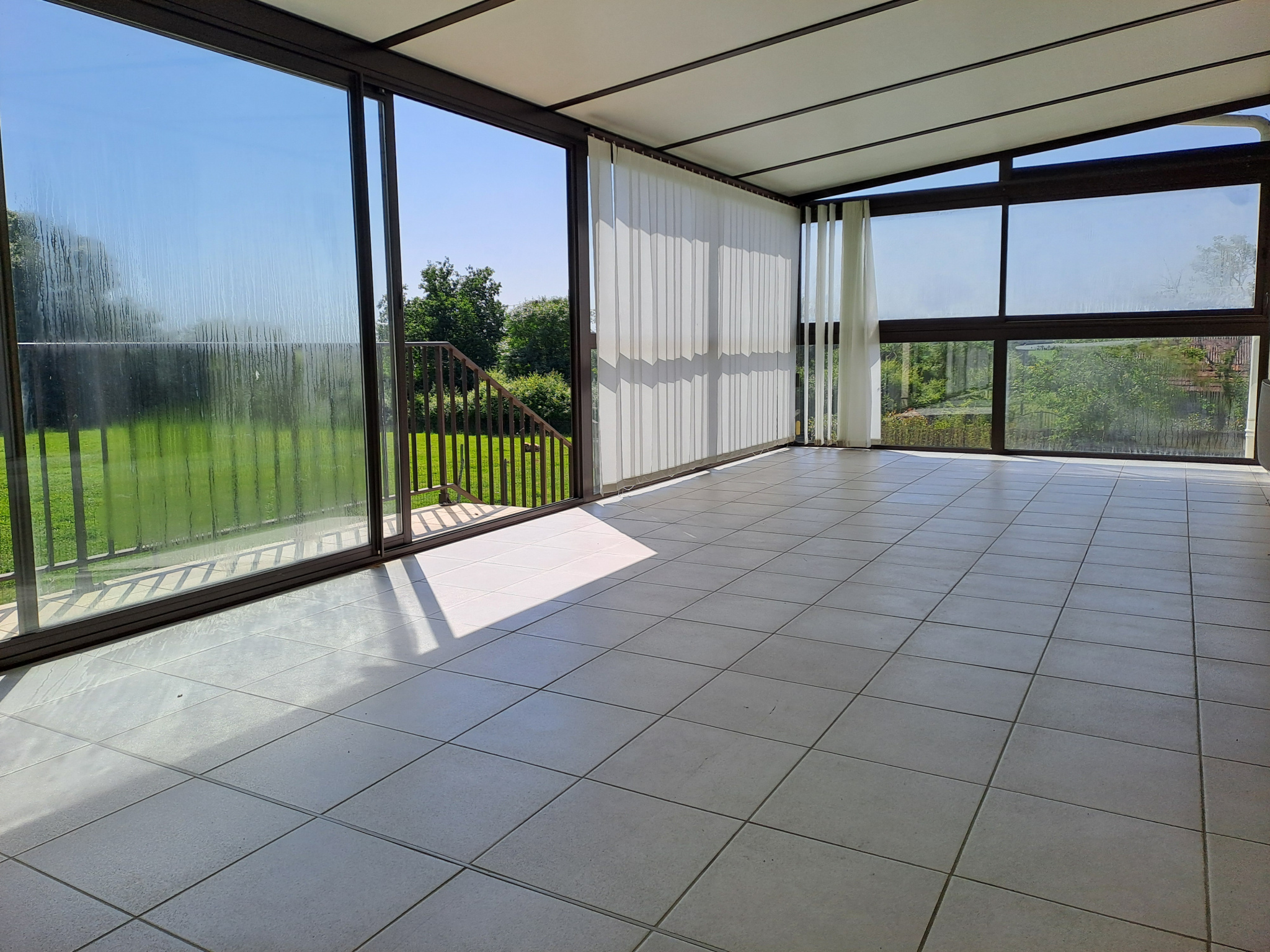 Elle offre une superficie habitable de 175 m2 comprenant au rez de chaussée une entrée avec placard, une cuisine aménagée ouverte sur la pièce de vie avec cheminée, une vaste véranda de 40m2, un couloir donnant accès à quatre chambres, salle d’eau avec douche à l’italienne, WC indépendant.