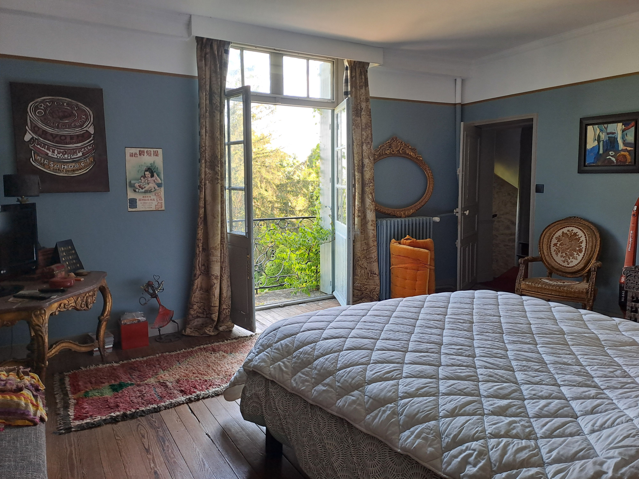 L’étage est accessible par sa tourelle et dispose d’une magnifique suite parentale de 40 m2 avec son balcon surplombant le parc et la vallée de la Loire, elle est dotée d’une salle de bains, d’un dressing et d’un WC indépendant, deux chambres et une salle de bains avec WC complètent ce niveau.